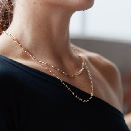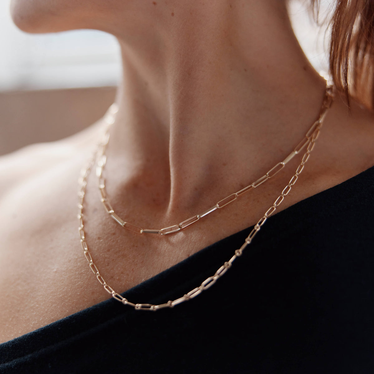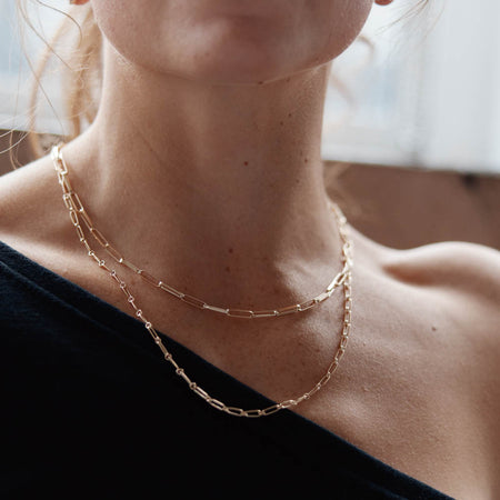 Made from locally recycled gold, these unique chains were designed and handmade in Auckland, NZ. The open style link gives an impressive gold look in a lightweight easy-to-wear design.
