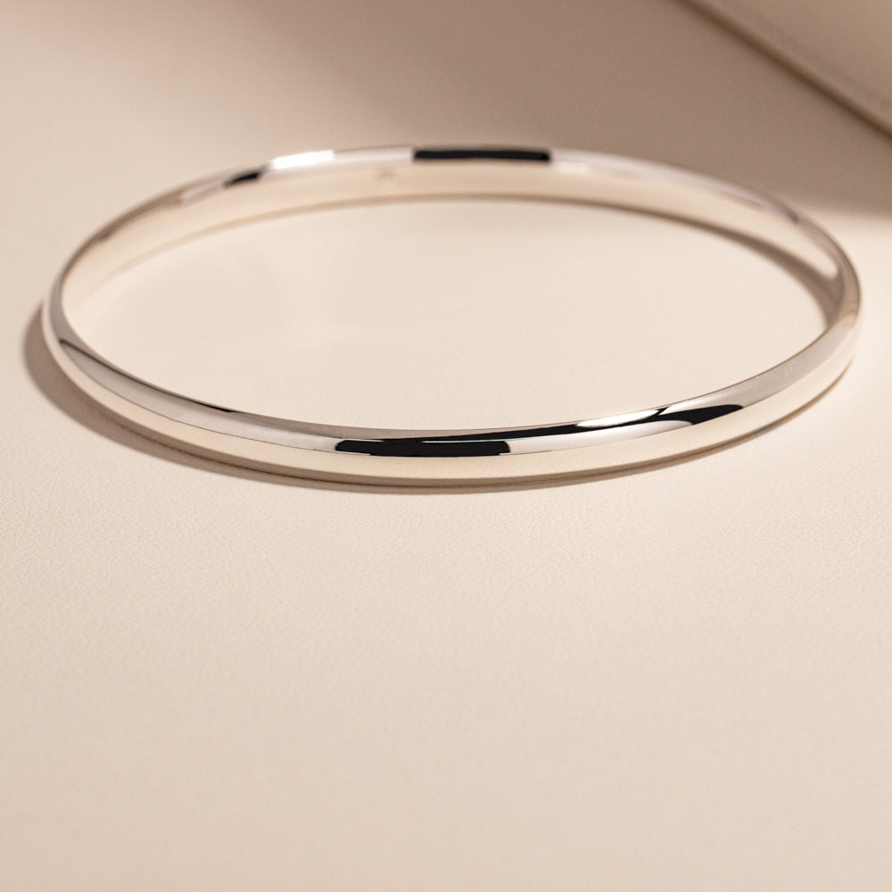 A great bangle which you will absolutely love wearing. The bangle is made from solid sterling silver and is 4.8mm wide. Elegant on its own and stunning stacked with other silver bracelets. This is the perfect piece to start your silver collection. Sterling silver bracelets also make a gorgeous gift for ladies of all ages.