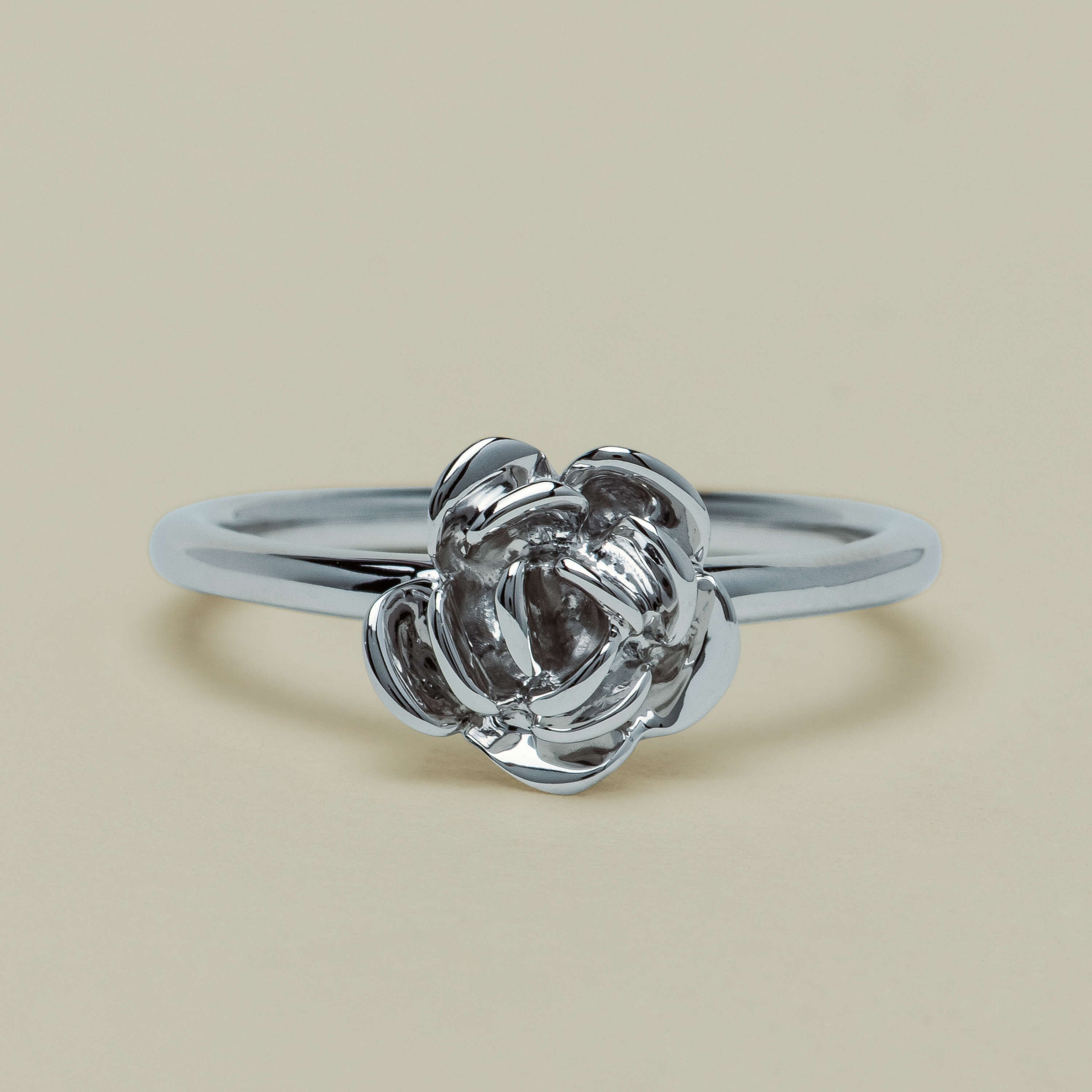 The refined simplicity of the polished band lets the rose motif take centre stage, making it a charming symbol of love and elegance.