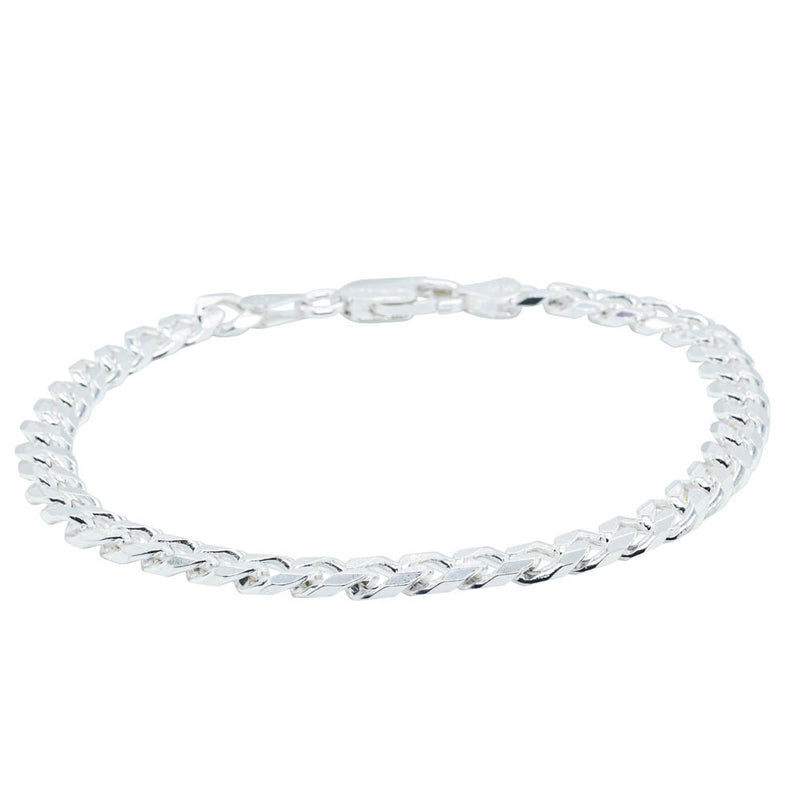 This Sterling Silver Bevelled Curb Link Bracelet is a beautiful piece of jewellery with a professional edge. Crafted from sterling silver, it features a unique bevelled side cut curb design that adds a sophisticated touch to any outfit.