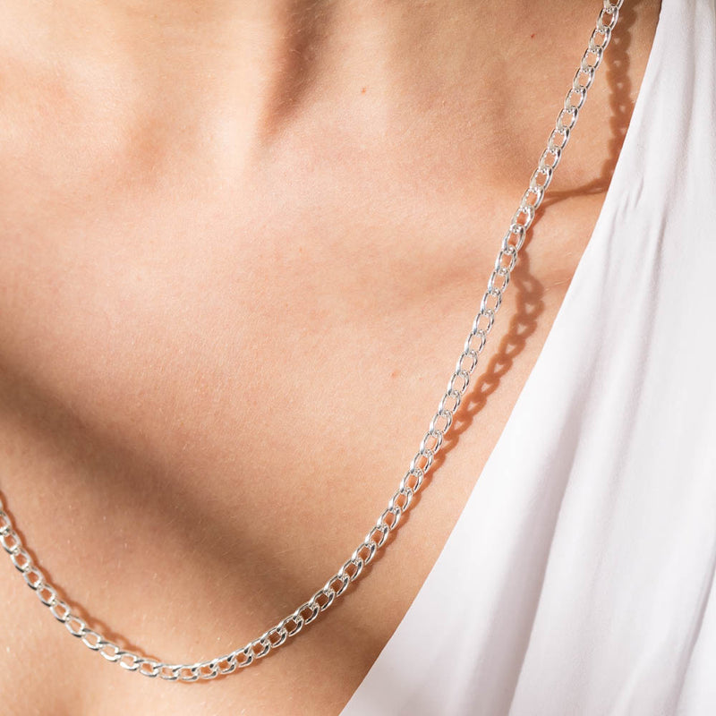 Model stacks the chain in lengths 45cm and 60cm. Please choose your desired length before adding product to cart.