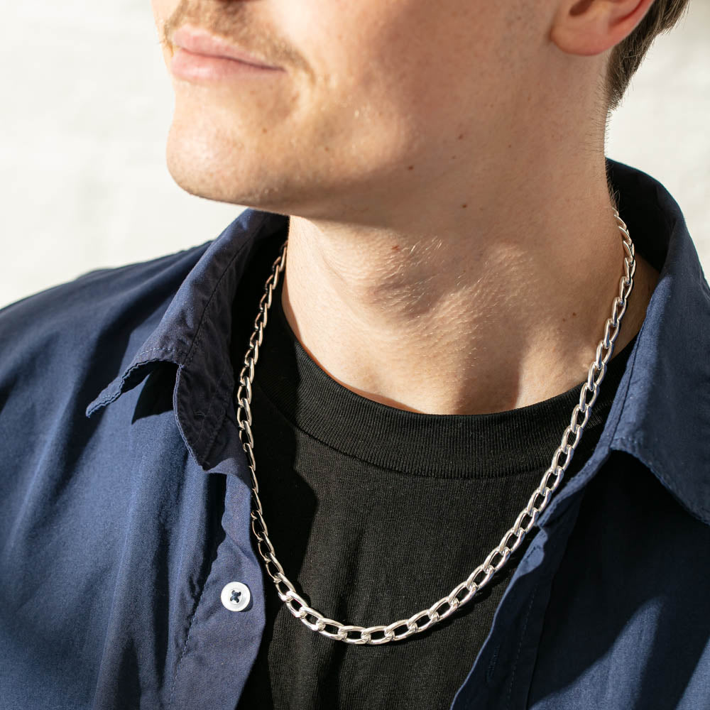 Heavy and luxurious, this beautiful sterling silver chain is sure to make a statement! This piece rests at a wonderful length of 55cm and can easily be worn solo.
