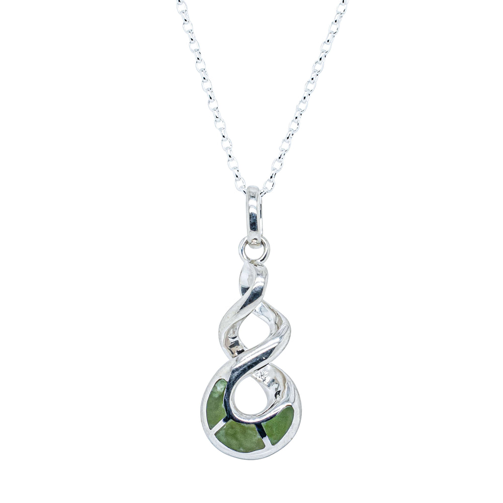 This luxurious Greenstone pendant is a wonderful present to gift to someone as a token of our beautiful country. This elegant piece is carefully crafted to perfection from sterling silver, and features a symbolic twist motif set with vibrant New Zealand Greenstone.