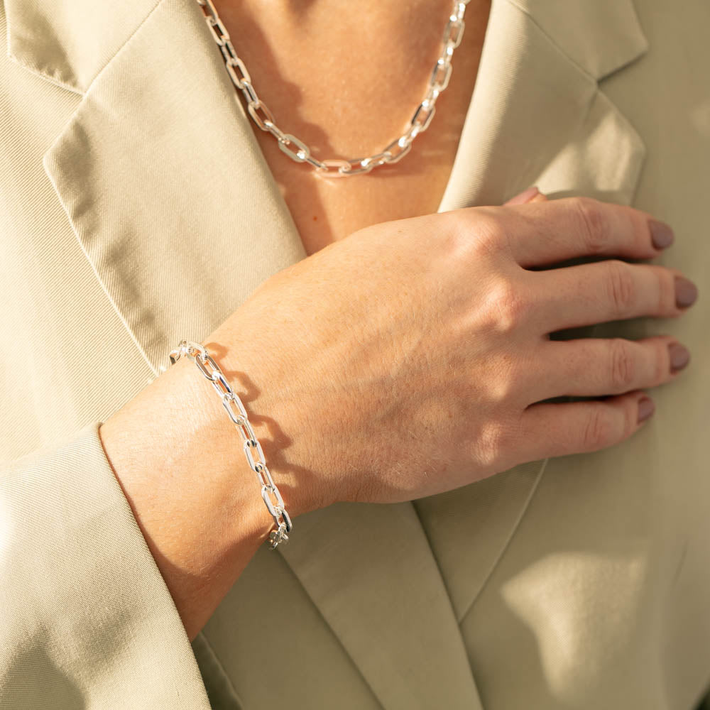 This sterling silver steadfast bracelet is a great way to add subtle style to any outfit. It is crafted from sterling silver, making it a durable and reliable addition to any jewellery collection. The bracelet will also stay securely on your wrist with its clasp closure.