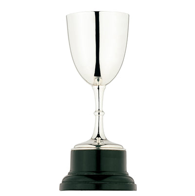 The sterling silver trophy is the perfect award to recognise achievement, skill and success. Its classic appearance will make it a beautiful and timeless keepsake. Hallmarked Chester 1927, this sleek cup stands on a wooden plinth.