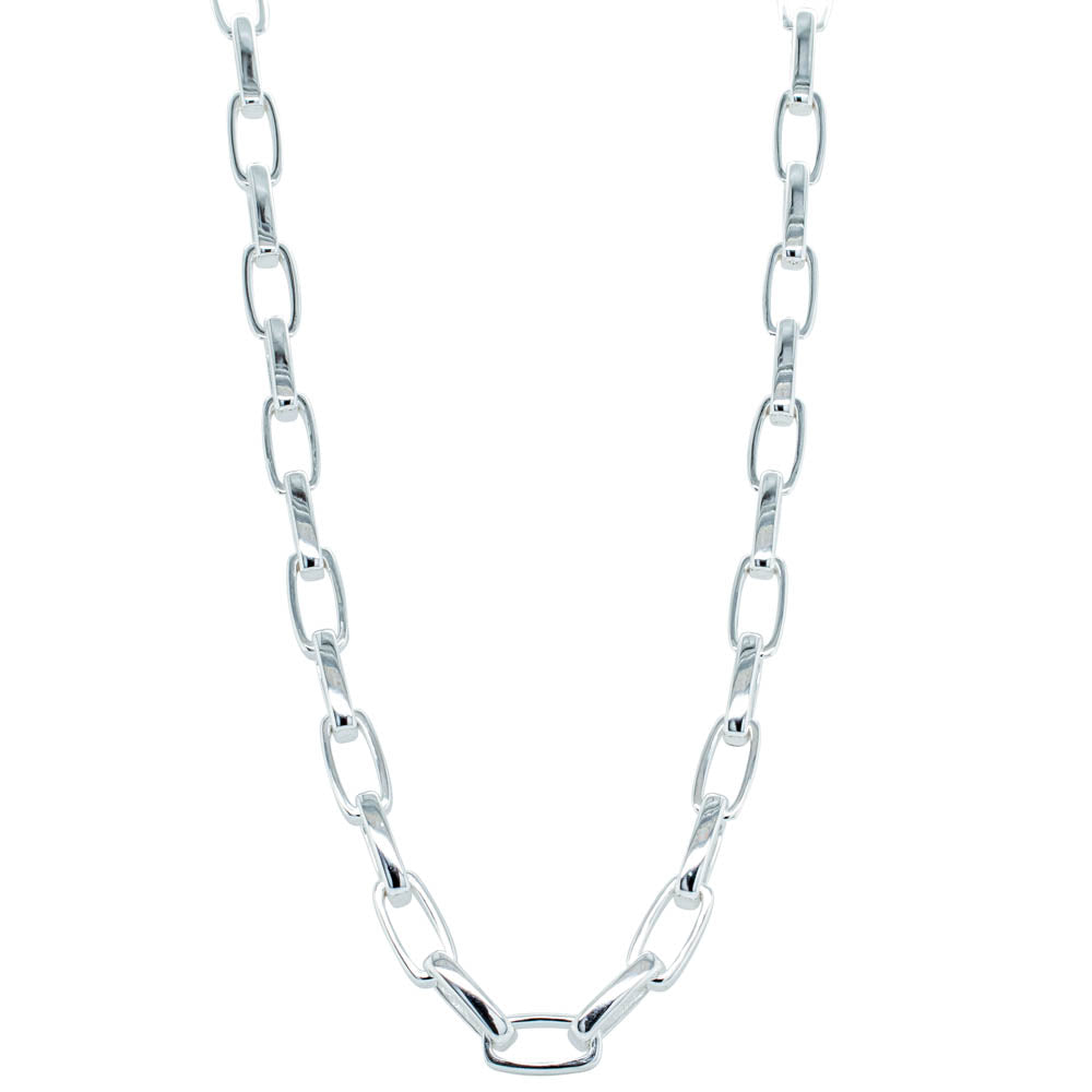 This sterling silver utility chain featuring rectangular links is perfect for creating an elegant and classic look. The chain is durable, strong, and long lasting.