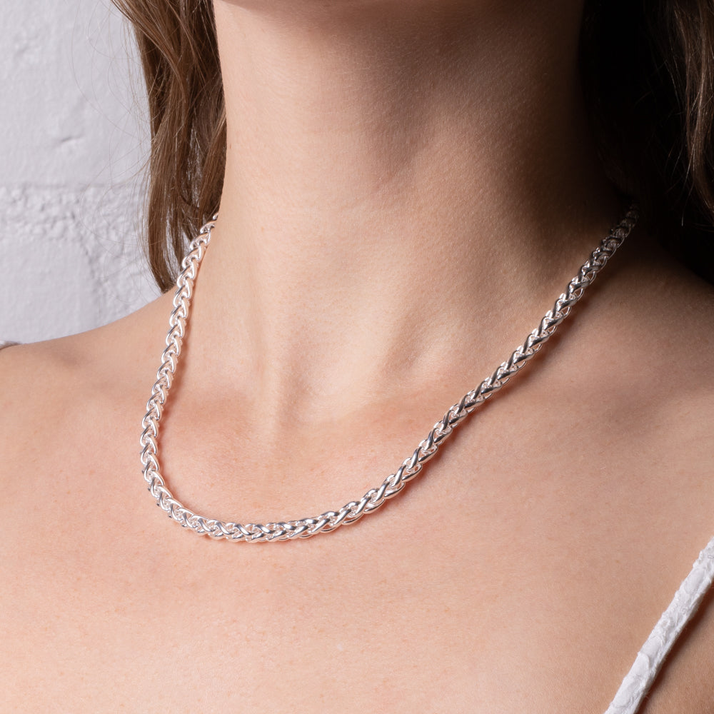 Classic and timeless... this elegant wheat chain has been crafted in sterling silver and looks exquisite both worn alone or with a pendant. Make all your ensembles sparkle with elegance. Go on, you deserve it!