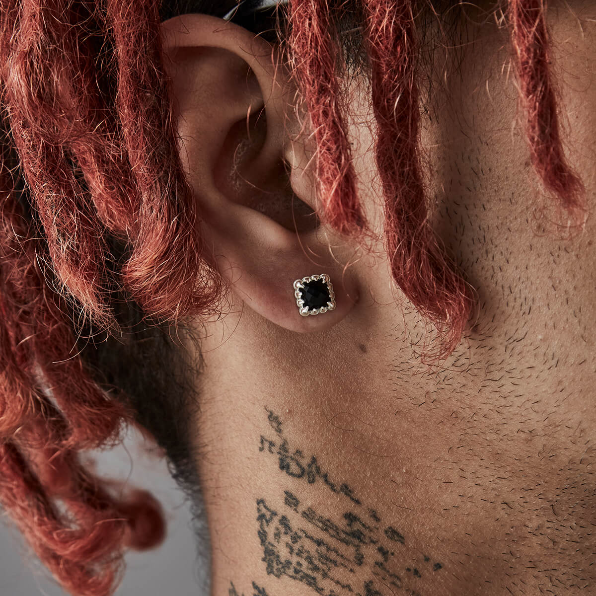 Mini Claw Stud Earrings feature square-shaped onyx stones secured in a claw setting. The Love Claw Earrings are made from a solid sterling silver.