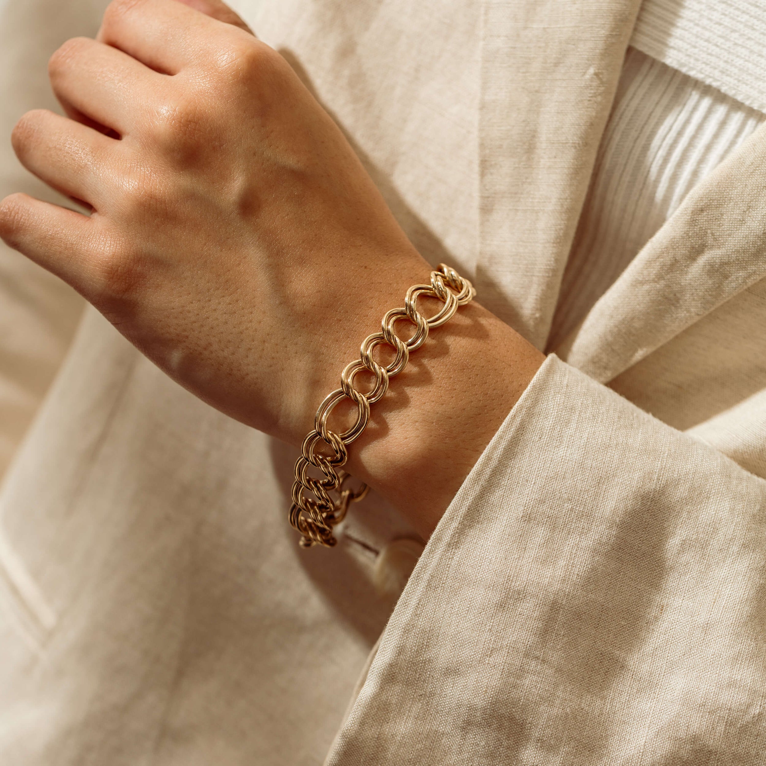 Vintage 9ct Yellow Gold Open Double Curb Link Bracelet