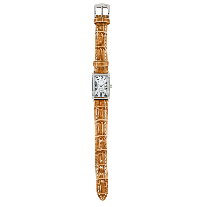 This 2010s Vintage Hamilton Ardmore ladies' watch showcases a refined rectangular stainless steel case and a white dial highlighted by silver Arabic numerals. Equipped with quartz movement.