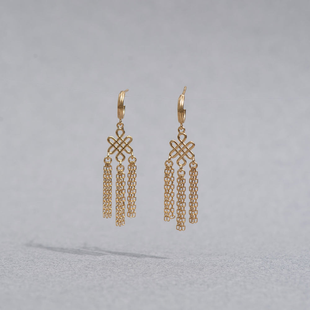 Symbolising infinity and the interconnected nature of all things. The knot of eternity is considered one of the eight auspicious symbols in Tibetan Buddhism. Following in the tradition of our fathers workshop Moonbird, these earrings are similar to his design and it brings us great joy to have made them now, for you.