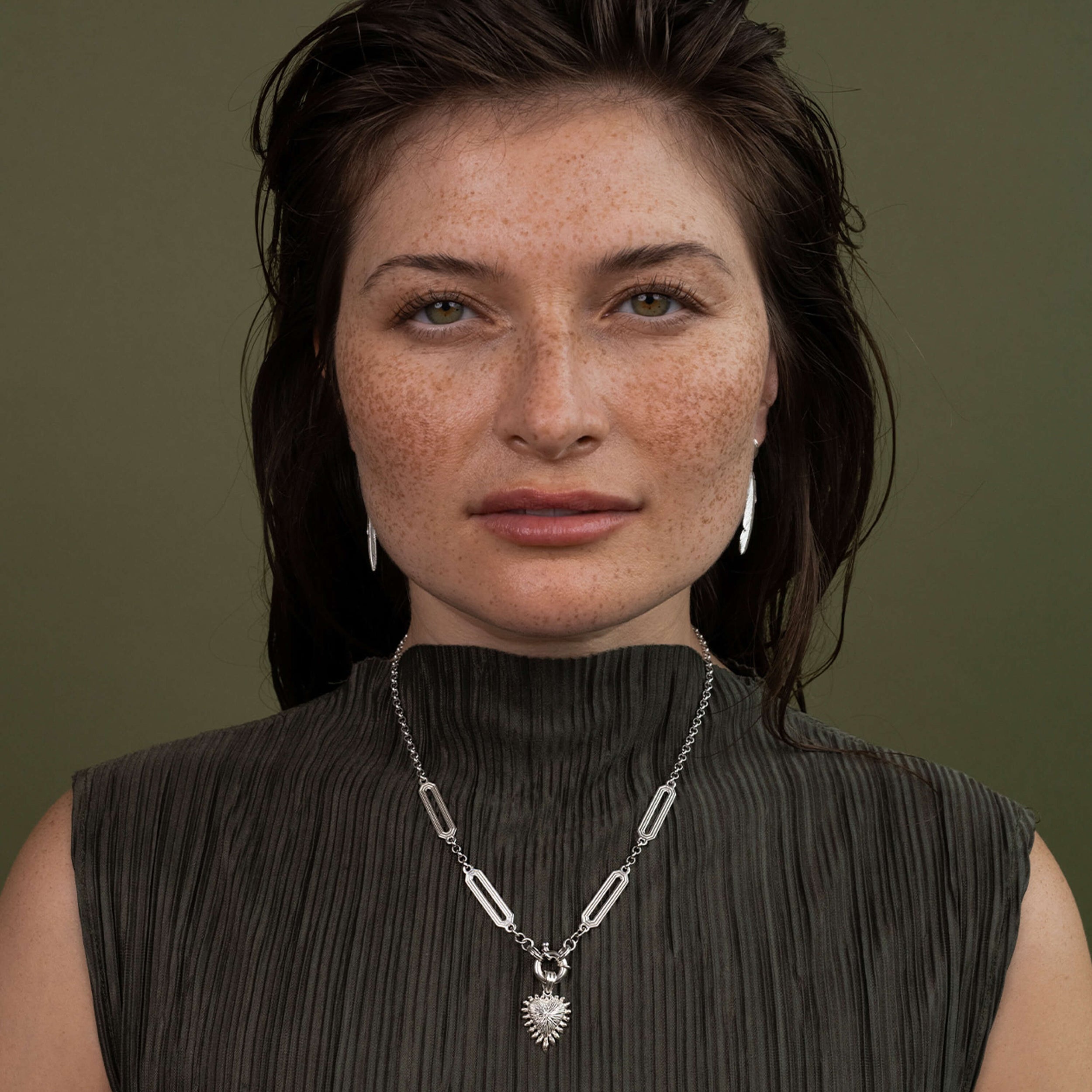 Designed to pair seamlessly with bolt ring chains, the Heart Rays Charm allows for the creation of a unique and personal statement piece. Consciously crafted from recycled 925 Sterling Silver, the pendant evokes the sun’s radiant rays, symbolising the outward expression of love and light. A thoughtful gift for a loved one or a meaningful keepsake to mark a personal milestone, this charm offers both beauty and sentiment in equal measure.