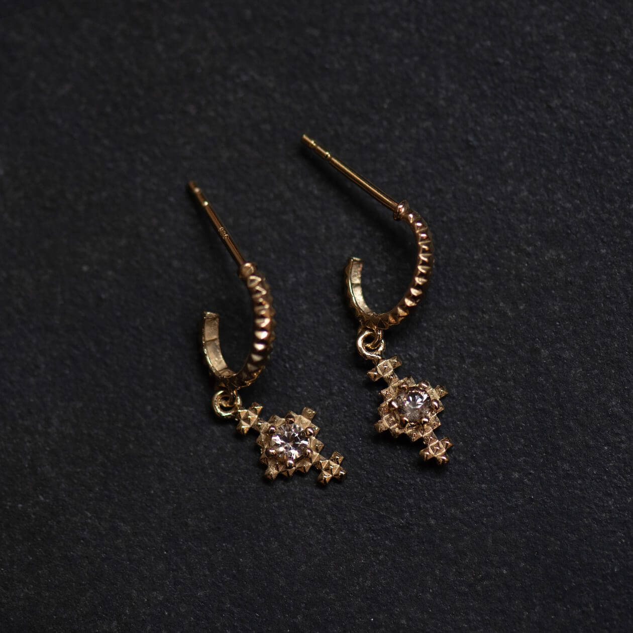 Indie Earrings have a unique textured hoop with a small Peach Zircon nestled into the centre of Indie. The warm, earthy tones of the Peach Zircon evoke a sense of calm and elegance, making Indie a blend of subtle grace and unique charm.