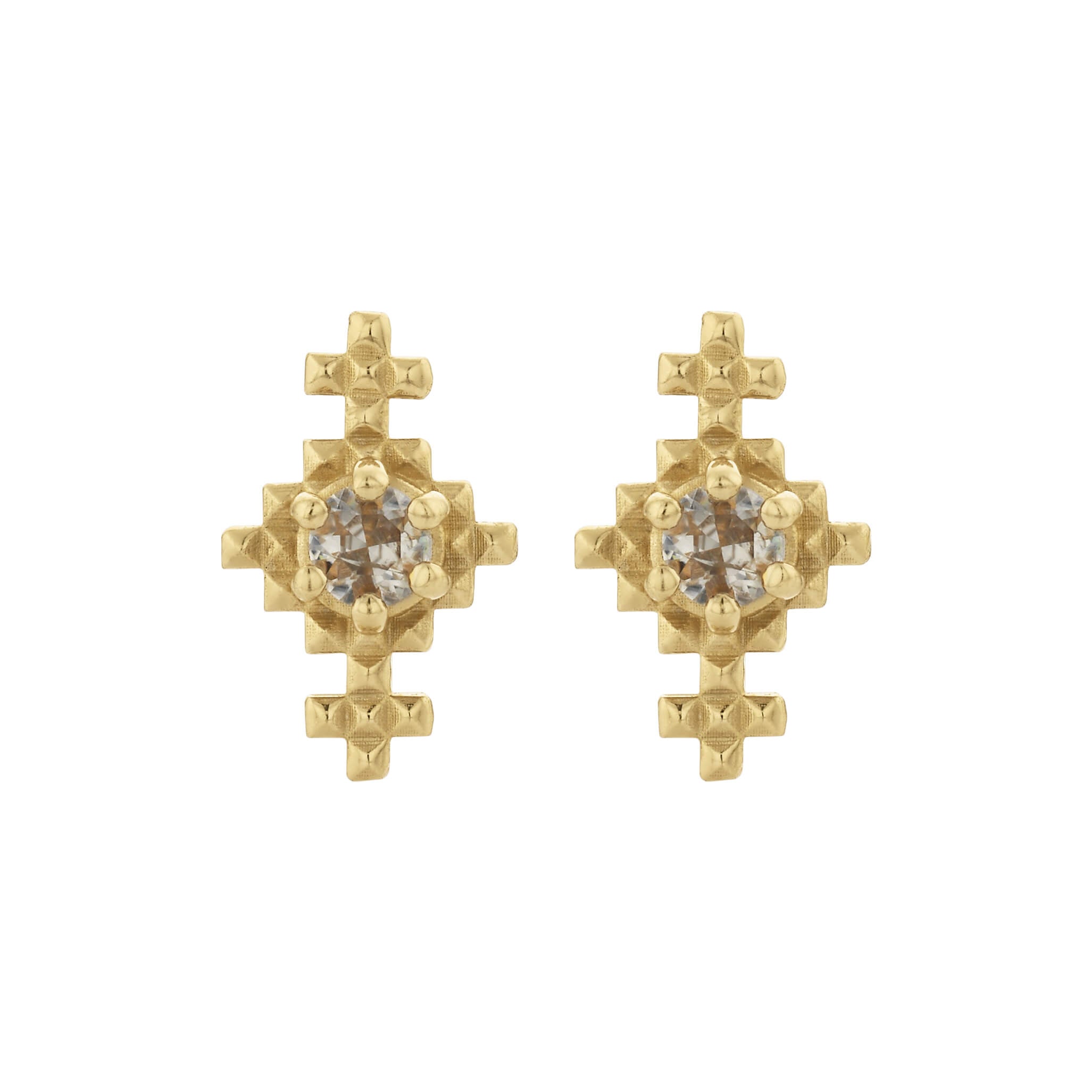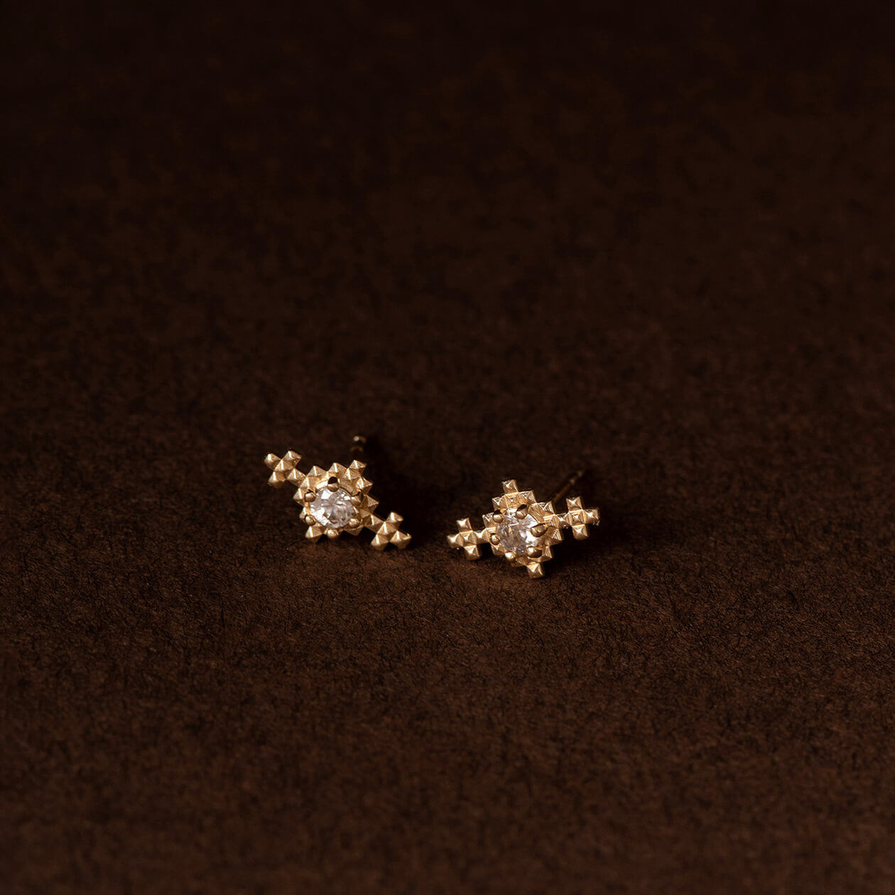 Indie is a textured stud with a small Peach Zircon nestled into the centre. The warm, earthy tones of the Peach Zircon evoke a sense of calm and elegance, making Indie a blend of subtle grace and unique charm.
