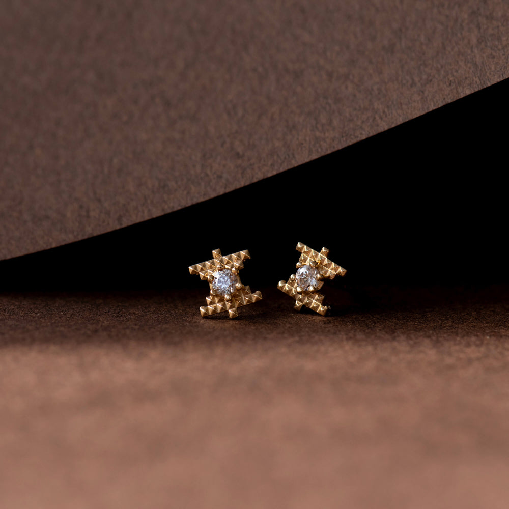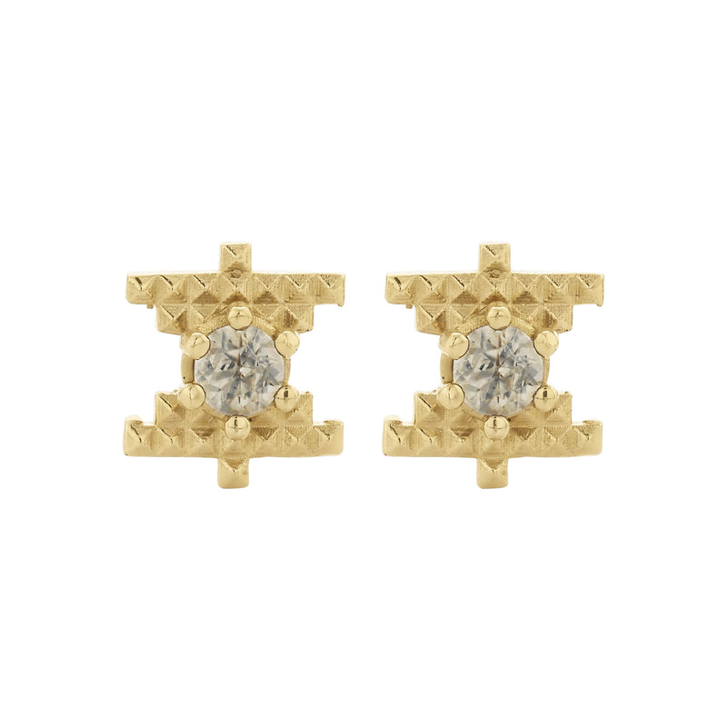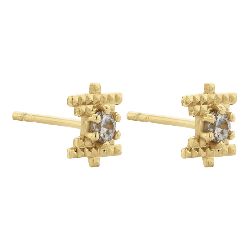 These studs feature a small Peach Zircon nestled into the centre and are a reminder to shed light on all areas of existence, illuminating the path to growth, positivity, and understanding.