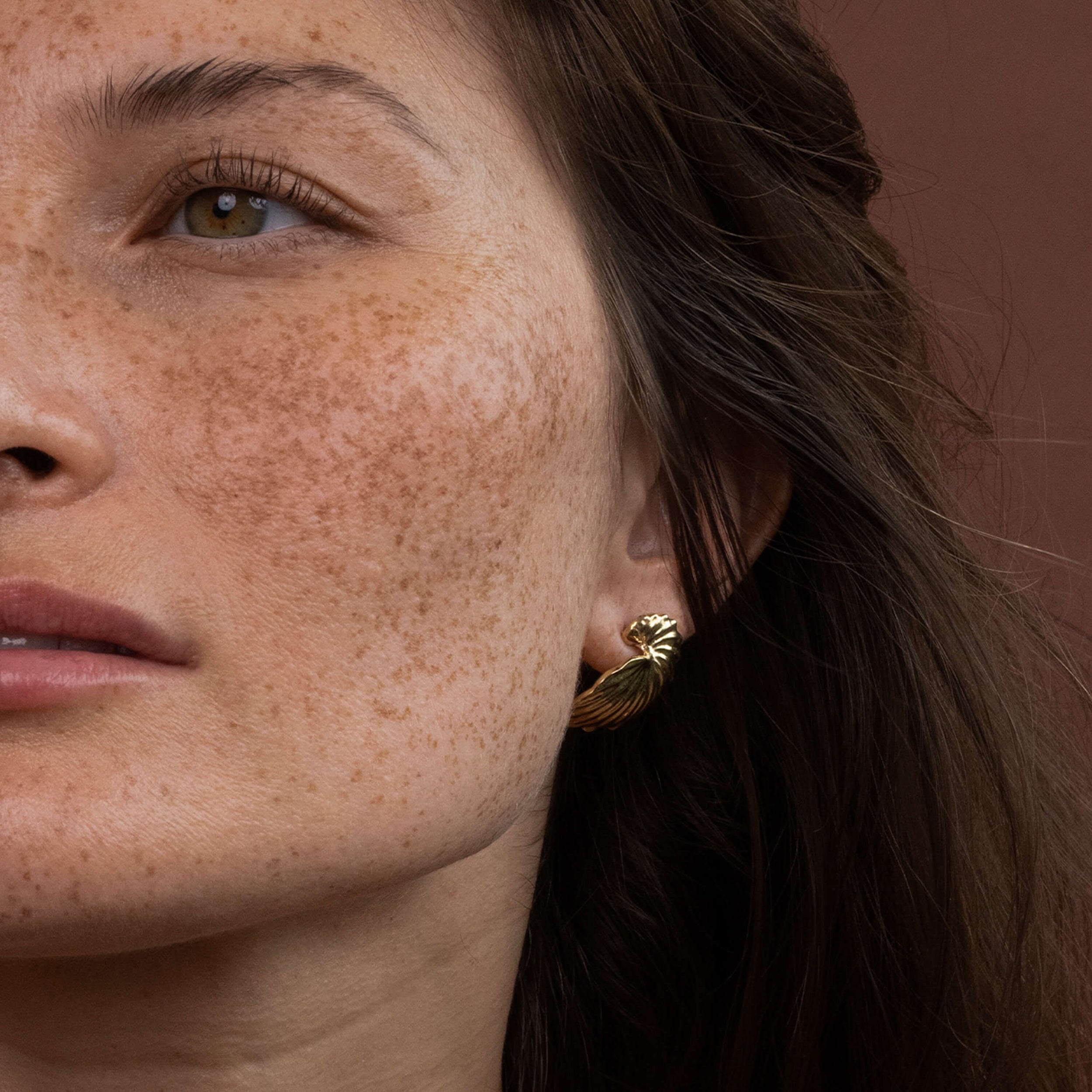 The Paper Nautilus Earrings are a celebration of artisanal craftsmanship, balancing the bold with the everyday. With the delicate details of the shell brought to life, these earrings make a subtle statement. Designed to be half of the Paper Nautilus shell, each earring curls around the face, mimicking the structure of the shell's spiral.
