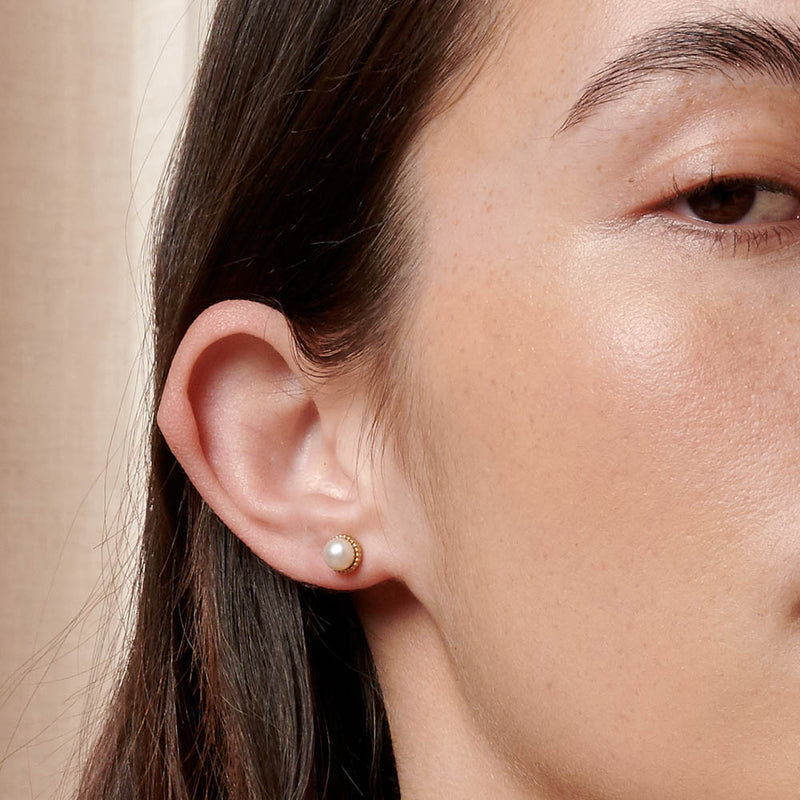 The Pearl earrings epitomise the beauty in simplicity. The round pearl is encased with a texture contrasting with the smooth face of the pearl. Style these earrings up or down to suit your individual look.